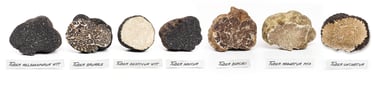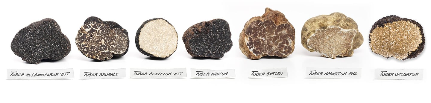 Le varieta' di tartufo coltivate sono: Bianchetto, Scorzone Estivo e Nero Pregiato. Abbiamo optato per queste varieta' di Tuber, in relazione ad attente analisi effettuate sul clima e sul terreno. La micorizzazione delle piante e' stata certificata dall'Universita' dell'Aquila.