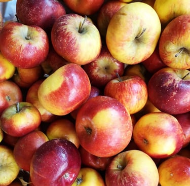 Mele a coccio calabrese" si riferisce a una varietà di mele tipica della Calabria, nota anche come "Melo Cocciolo" o "Milu a Cuoccio" nel dialetto locale. Queste mele sono caratterizzate da dimensioni contenute, buccia liscia spesso rossa con sfumature giallo-verdi, e una polpa compatta e croccante, con un sapore equilibrato. Sono apprezzate sia per il consumo fresco che per la trasformazione in confetture e succhi.